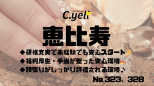 【No.323、328】恵比寿エリア 女性が長く輝ける職場✨未経験からでも安心してデビューできるネイルサロン♪